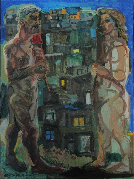 Love in Damascus, of which there are two versions, in the backbone of this cycle of paintings. Timeless love, which has autobiographical importance, for the young artist a few months before sealed his love with marriage in an Armenian apostolic church in Damascus, is a confirmation of the victory of life over death.