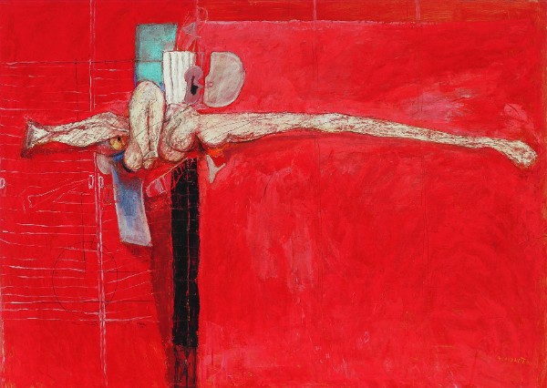 The deformed physiognomies, the unnatural positions of the limbs seen at once from various perspectives that are it were testing out the borders of connection with the body, the emphasised facial expressions the shrieks from which continue in the nearby brush or pencil strokes and explode in the graphism of the forces, showing the completely personal expression and vibration of just vented aggression.
