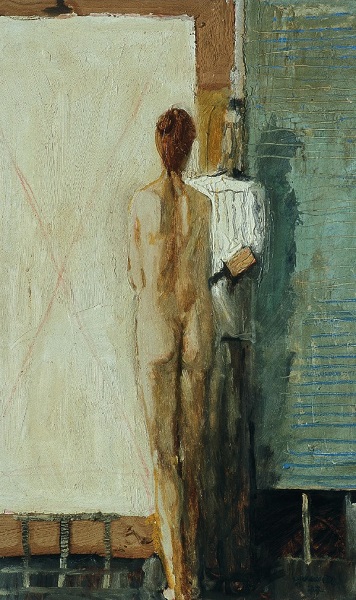 It is easy to see in the painting of Ljubo Ivančić that certain motifs, or perhaps they should be called genres, inform the whole of his artistic life. The most represented are nudes and self-portraits. Indeed, these two themes tend very often to come together, and we can find in the paintings depictions of the nude and the painter himself. If we go further on ito explanations and attempt to locate the human figures shown, to determine the place of their being, we will discover that they are located in the painter's studio. But we are more interested in what the painter is representing, and why, what he wants to tell us with such a selection of figures, what exactly they mean.