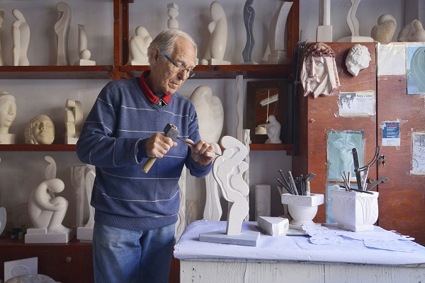 Asim Hebib was born in 1940 in Cernica. His first instruction in sculpture came from his art teacher in primary school, Ivan “Pajo” Mitrović. From 1957 to 1960 he trained with the Italian sculptor Giovanni Colonna in Dubrovnik, where he gained his sculpting and carving education. After this period of learning, Asim Hebib at the beginning of the 1960s started creating his first independent sculptural works, while also working for many years with Giovanni Colonna on various projects. He also took part in the Memorial Cemetery Mostar project of the architect Bogdan Bogdanović, on which for three years he was charged with the making of one part of the monumental symbolic reliefs. The Hebib Studio was founded in 1963 in Dubrovnik, and the sculptor still works in it today. He has created an important and distinctive sculptural oeuvre in its many thematic series. His works are placed in public places and are to be found in numerous private and public art collections. As well as with sculpture, Asim Hebib also occupies himself with decorative stone carving and drawing, and writes poetry as well. He is an active participant of numerous art colonies in Croatia. He has exhibited at numbers of solo and collective shows in Croatia.