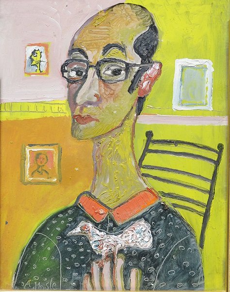Autoportret s pticom, 1968., ulje/papir, 29 x 23 cm, slikarovi nasljednici, Dubrovnik