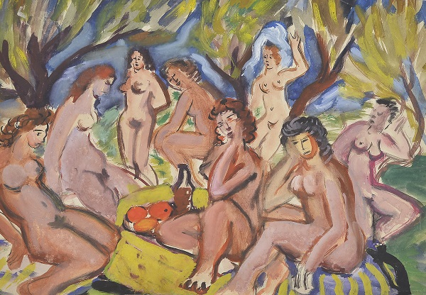 Aktovi pod maslinama, oko 1941., tempera / papir, 36 x 51 cm, slikarovi nasljednici, Dubrovnik