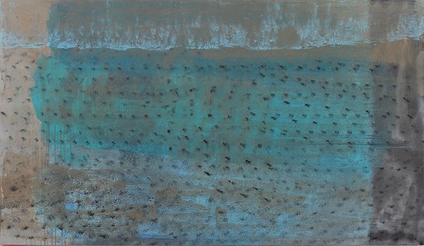Tearing up clouds, triptych, 2018, acrylic on canvas, 390 x 140 cm