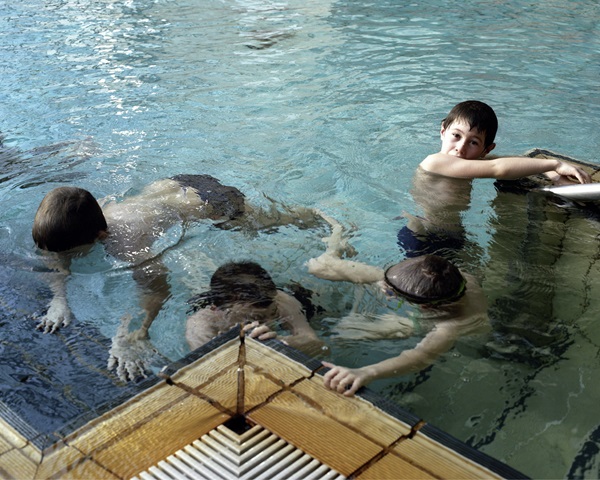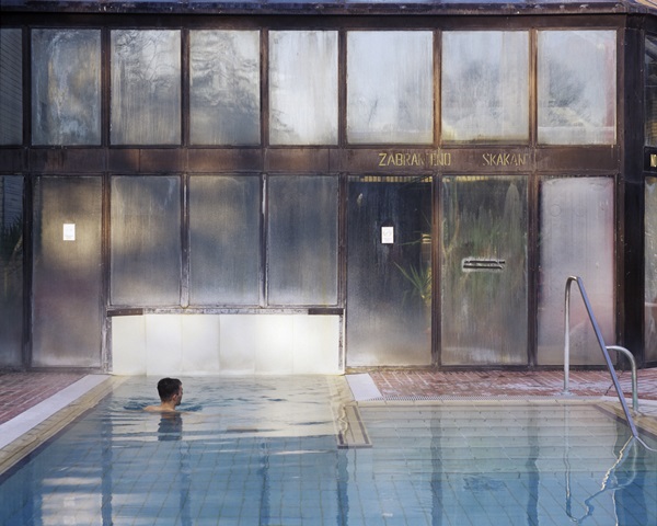This is a selection from a series of photographs (2011 - 2025) of the Daruvar Spa and Health Resort complex built in 1980. In the Spa series, the author shoots "here and now", but at the same time records the architecture and interior design that contain the codes of another time. The captured interaction of people in the pool space signifies not only the communication of people at the time when Bojan Mrđenović was filming them, but also a universal image of socializing, the presence of the same social rituals in an unchanged spatial but different temporal context. The photographer's gaze and the shot that, through his selection, are placed before the observer's eyes associatively lead in several directions, but it is impossible to overlook his exceptional sensitivity to the disembodied presence of water vapor that softens shapes and transforms simple scenes into meaningful, poeticized visions. The spa in the photographs becomes an enclave of humanity, a scene of socializing, a surviving indicator of the continuity of repetitive rituals of soaking, relaxing, and swimming that historically date back to ancient times. However empathetic he may be towards his models, the photographer's real object of interest is the specific functioning of the community within the spa, recording established patterns and activities, the multiplicity of views that generate a vivid and dynamic image of the place.